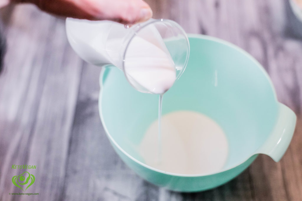 I soon realized that coconut milk was the best option. Even better was coconut cream. Luckily the large grocery store near us sells thick coconut cream without any thickeners or food additives. The fat content is 20% and it has only 1.9 grams net carbs per 100 grams (3.5 oz) coconut cream, so it’s ideal for a keto-vegan diet.